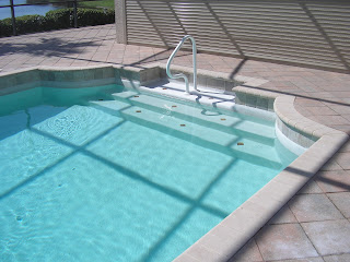 The above picture shows steps that were added to the spa with decorative tile. We can help you custom design your steps and tile.